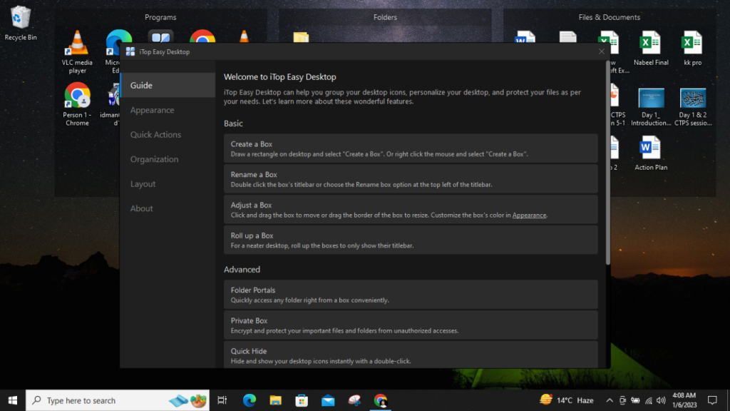 iTop Easy Desktop Free is an excellent desktop organizer for organizing your Windows desktop and adding a touch of personalization. It offers a range of features that make it easy to declutter your desktop, enhance productivity, and customize the look and feel of your workspace.