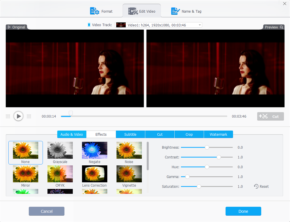 The built-in toolbox helps you touch up video footage with a diversity of editing options. You can trim, cut, crop, merge, split, rotate, and flip a video, or add effect, watermark, and subtitles to a video. It allows you to transform a video into GIF, 3D to 2D, make M3U8 and MKV video, and take snapshots. Customized adjustments to FPS, resolution, and aspect ratio are also feasible. In short, you can produce stunning works with these features.