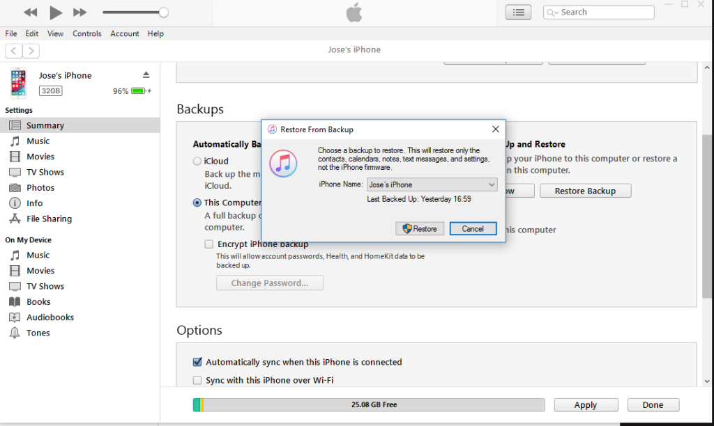 Just like iCloud backup, iTunes also has a copy of your deleted videos. You can easily recover deleted videos from your iPhone using Apple’s backup storage. However, along with the videos, you can use this method to restore other data saved in the backup. All you have to do is: