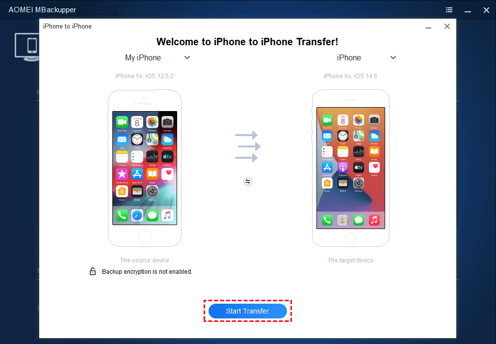 AOMEI MBackupper is a new popular way to perform iPhone migration. It is a powerful and professional iPhone transfer software enabling users to move data to different devices. With its help, you can easily transfer all data, including settings, app data, photos, videos, messages to your new iPhone.