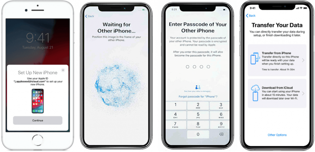 QuickStart is the first tool you can try. Apple introduced QuickStart to migration iPhone data to a new iPhone during the setup in iOS 12.4. So if your iPhone is running with 12.4 or later, QuickStart can help you to migrate data to new iPhone.