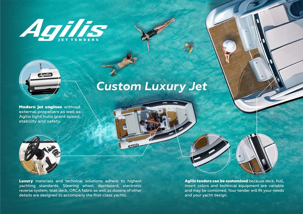 In summary, only in a few years from family business Agilis Jettenders becomes the world known jet tender`s manufacturer which is inextricably associated with customization, luxury and quality yacht tenders.