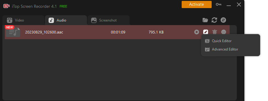 - Open iTop Screen Recorder and go to Settings > Format > Audio. Choose your preferred export format, like MP3, and adjust audio quality as needed.
