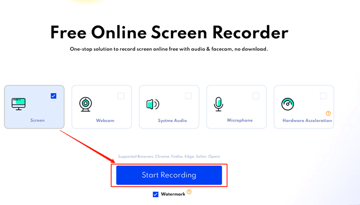 iTop Online Screen Recorder allows quick, hassle-free YouTube audio recording directly in your browser. Just visit the site, click record, and capture streaming audio easily. However, you may be limited by short recording times.